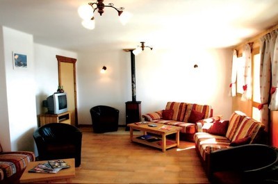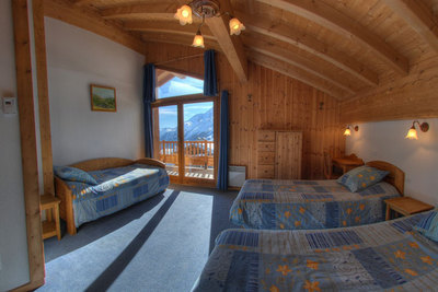 The chalet has an atmospheric open plan lounge/dining room with a wood burning stove, looking out onto a large south-facing balcony with superb views over the Tarentaise valley and across to the slopes of Les Arcs. All the bedrooms are ensuite and most have balconies and consist of 1 double, 3 twins, 3 triples and 1 quad