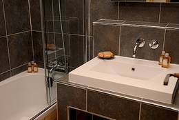 Bathroom: Bath and washbasin